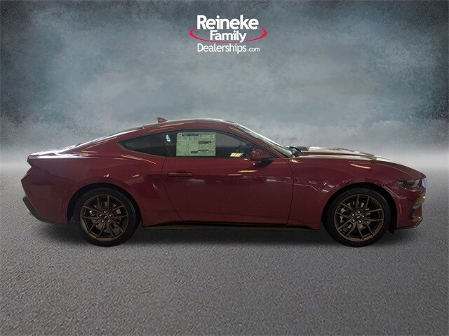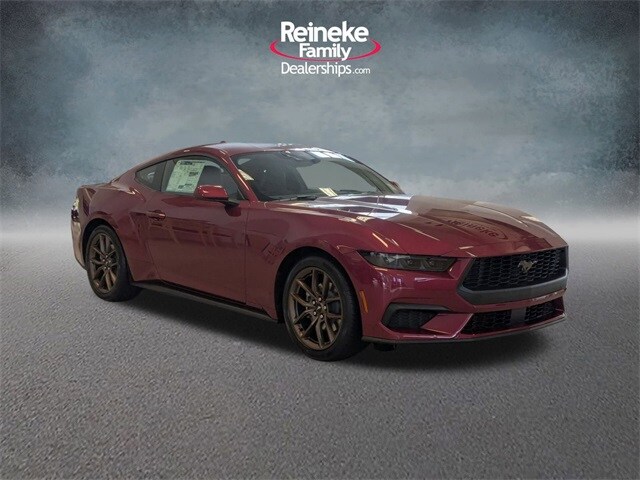 Check out all these great options!!! Bronze Appearance Package (Sinister Bronze Front and Rear Pony Badges and Wheels: 19" x 8.5" Sinister Bronze Painted Aluminum), 1st Row Carpeted Black Floor Mats, 4-Wheel Disc Brakes, ABS brakes, Air Conditioning, Alloy wheels, AM/FM Stereo, Auto High-beam Headlights, Automatic temperature control, Brake assist, Bumpers: body-color, Compass, Delay-off headlights, Driver door bin, Driver vanity mirror, Dual front impact airbags, Dual front side impact airbags, Electronic Stability Control, Emergency communication system: 911 Assist, Exterior Parking Camera Rear, Four wheel independent suspension, Front anti-roll bar, Front Bucket Seats, Front Center Armrest, Front dual zone A/C, Front reading lights, Fully automatic headlights, Illuminated entry, Knee airbag, Leather Shift Knob, Low tire pressure warning, Occupant sensing airbag, Outside temperature display, Overhead airbag, Overhead console, Panic alarm, Passenger door bin, Passenger vanity mirror, Power door mirrors, Power steering, Power windows, Premium Floor Liners Front and Rear (with Carpet Mats), Radio data system, Rain sensing wipers, Rear anti-roll bar, Rear Parking Sensors, Rear window defroster, Remote keyless entry, Speed control, Speed-sensing steering, Speed-Sensitive Wipers, Split folding rear seat, Sport steering wheel, Steering wheel mounted audio controls, SYNC 4, Tachometer, Telescoping steering wheel, Tilt steering wheel, Traction control, Trip computer, Variably intermittent wipers, Voltmeter, and Wheels: 18" x 8" Painted Shadow Silver Cast Aluminum At Reineke Family Dealerships, we pride ourselves on delivering a convenient and transparent buying experience. We are Lima's Ford Store! Proudly serving the Lima, Kenton, Bluffton, Shawnee, Delphos communities. Get your key from Reineke!