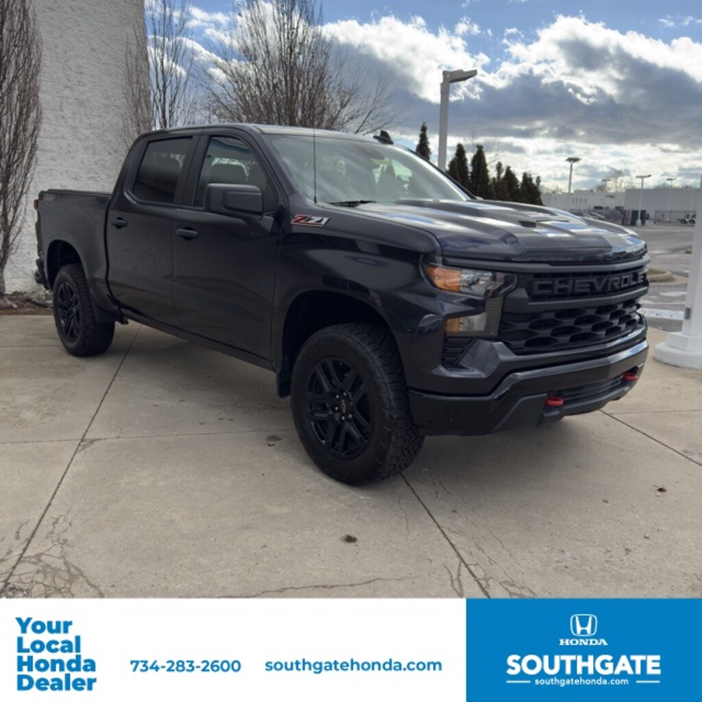 We are your Downriver Dealer! Proudly Serving Southgate, Detroit, Grosse Ile, Wyandotte, Taylor, Allen Park, Dearborn, Monroe and our Southeast Michigan Communities! Check out all these great options Custom Convenience Package (Electric Rear-Window Defogger, EZ Lift Power Lock & Release Tailgate, LED Cargo Area Lighting, and Remote Vehicle Starter System), Preferred Equipment Group 2CX (10-Way Power Driver Seat w/Lumbar, 120-Volt Bed Mounted Power Outlet, 120-Volt Instrument Panel Power Outlet, 3.5" Monochromatic Display Driver Info Center, Auto-Locking Rear Differential, Bluetooth® For Phone, Chevrolet Connected Access Capable, Color-Keyed Carpeting Floor Covering, Compass, Deep-Tinted Glass, Dual Rear USB Ports (Charge Only), Electrical Steering Column Lock, Electronic Cruise Control, Front Rubberized Vinyl Floor Mats, HD Rear Vision Camera, Manual Tilt Wheel Steering Column, OnStar & Chevrolet Connected Services Capable, Performance Red Recovery Hooks, Power Front Windows w/Driver Express Up/Down, Power Front Windows w/Passenger Express Down, Power Rear Windows w/Express Down, Rear 60/40 Folding Bench Seat (Folds Up), Rear Rubberized-Vinyl Floor Mats, Remote Keyless Entry, SiriusXM Radio, Standard Tailgate, Theft Deterrent System (Unauthorized Entry), Wi-Fi Hot Spot Capable, and Wireless Phone Projection), Suspension Package (Heavy-Duty Air Filter and Hill Descent Control), Trailering Package (Hitch Guidance), 8-Speed Automatic, 4WD, Black Cloth, 220 Amp Alternator, 3.42 Rear Axle Ratio, 4-Wheel Disc Brakes, 40/20/40 Front Split-Bench Seat, 6 Speakers, 6-Speaker Audio System, ABS brakes, Air Conditioning, Alloy wheels, AM/FM radio: SiriusXM, Apple CarPlay/Android Auto, Auto High-beam Headlights, Automatic Emergency Braking, Brake assist, Chevytec Spray-On Black Bedliner, Cloth Seat Trim, Delay-off headlights, Driver door bin, Driver vanity mirror, Dual front impact airbags, Dual front side impact airbags, Electronic Stability Control, Following Distance Indicator, Forward Collision Alert, Front anti-roll bar, Front Center Armrest w/Storage, Front Pedestrian Braking, Front reading lights, Front wheel independent suspension, Fully automatic headlights, Heated door mirrors, Illuminated entry, IntelliBeam Automatic High Beam On/Off, Lane Keep Assist w/Lane Departure Warning, Low tire pressure warning, Not Equipped w/Rear USB Ports, Not Equipped w/Steering Column Lock, Occupant sensing airbag, Outside temperature display, Overhead airbag, Overhead console, Panic alarm, Passenger door bin, Passenger vanity mirror, Power door mirrors, Power driver seat, Power steering, Power windows, Premium audio system: Chevrolet Infotainment 3, Radio data system, Radio: Chevrolet Infotainment 3 System, Rear reading lights, Rear step bumper, Rear window defroster, Remote keyless entry, Security system, Speed control, Speed-sensing steering, Split folding rear seat, Tachometer, Tilt steering wheel, Traction control, Trip computer, Variably intermittent wipers, Voltmeter, Wheel Locks (Set of 4) (LPO), Wheels: 18" x 8.5" Black Painted Aluminum, and Wheels: 20" x 9" High Gloss Black Painted Alum.