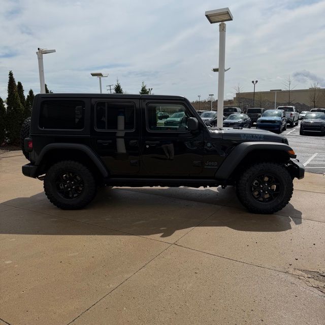 We are your Downriver Dealer! Proudly Serving Southgate, Detroit, Grosse Ile, Wyandotte, Taylor, Allen Park, Dearborn, Monroe and our Southeast Michigan Communities! Check out all these great options Quick Order Package 29W Willys 4xe (4-Wheel Drive Swing Gate Decal, 4.10 Rear Axle Ratio, 7 & 4 Pin Wiring Harness, 97 MPH Vehicle Max Speed Calibration, Auxiliary Switches, Black Grille, Class II Receiver Hitch, Conventional Differential Front Axle, E-Locker Rear Axle, Front LED Fog Lamps, LED Premium Reflector Headlamps, Molded in Color Rubicon Highline Flare, MOPAR All-Weather Floor Mats, Off-Road Plus Mode, Wheels: 17" x 7.5" Painted Black, Willy's Suspension, and Willys 4xe Hood Decal), 2.0L I4 DOHC, 3.73 Rear Axle Ratio, 4-Wheel Disc Brakes, 8 Speakers, ABS brakes, Air Conditioning, Alloy wheels, AM/FM radio: SiriusXM, Apple CarPlay/Android Auto, Black 3-Piece Hard Top, Brake assist, Cloth Low-Back Bucket Seats, Compass, Delay-off headlights, Driver door bin, Driver vanity mirror, Dual front impact airbags, Dual front side impact airbags, Electronic Stability Control, Freedom Panel Storage Bag, Front anti-roll bar, Front Bucket Seats, Front Center Armrest w/Storage, Front fog lights, Front License Plate Bracket (DISC), Front reading lights, Fully automatic headlights, Heated door mirrors, Illuminated entry, Integrated roll-over protection, Low tire pressure warning, Occupant sensing airbag, Outside temperature display, Overhead airbag, Panic alarm, ParkView Rear Back-Up Camera, Passenger door bin, Passenger vanity mirror, Power door mirrors, Power steering, Power windows, Radio data system, Radio: Uconnect 5 w/12.3" Display, Rear anti-roll bar, Rear reading lights, Rear Window Defroster, Rear Window Wiper/Washer, Remote keyless entry, Security system, Speed control, Split folding rear seat, Sport Suspension, Steering wheel mounted audio controls, Tachometer, Telescoping steering wheel, Tilt steering wheel, Traction control, Trip computer, Variably intermittent wipers, Voltmeter, and Wheels: 20" x 8" Machined/Painted Gray.